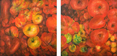 Tomatenernte, Acryl auf Leinwand, 160x80 cm